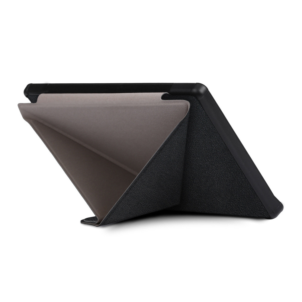 In addition to holding it in your hands while reading, you can also fold the cover behind your device as pictured in the images.